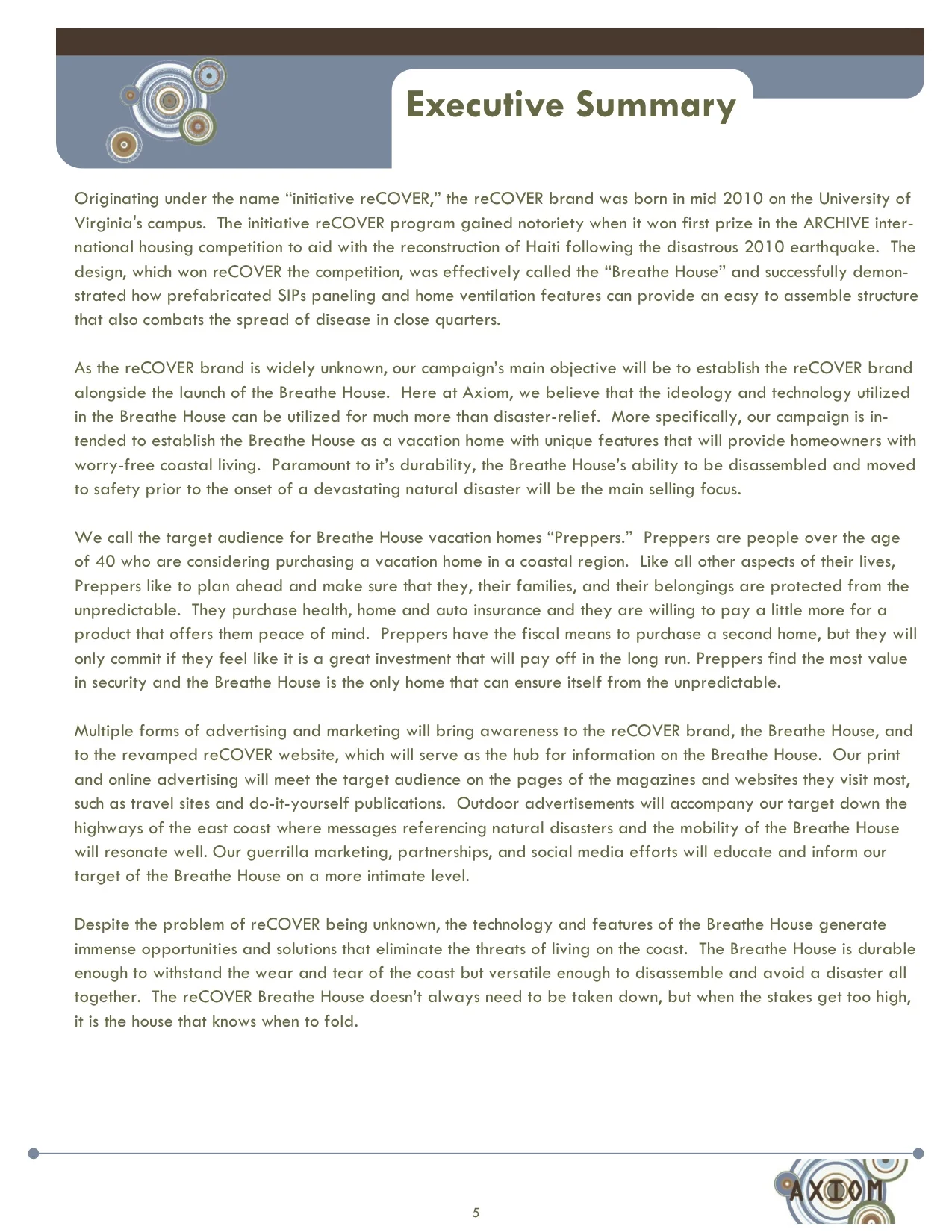 This was a campaign created for Advertising Campaigns. The client was reCOVER, a real company that was looking at expanding into the housing industry.